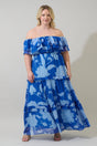 Turn heads in this vibrant cobalt blue maxi dress, featuring a romantic off-shoulder ruffle neckline and breezy tiered skirt. Adorned with oversized floral prints in soft powder blue, it’s the perfect choice for summer getaways, beachside dinners, or garden parties. Lightweight, flowy, and effortlessly chic.